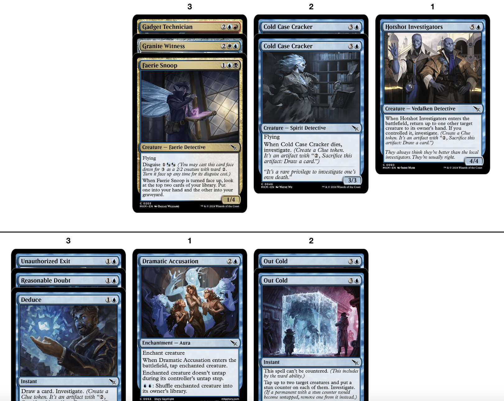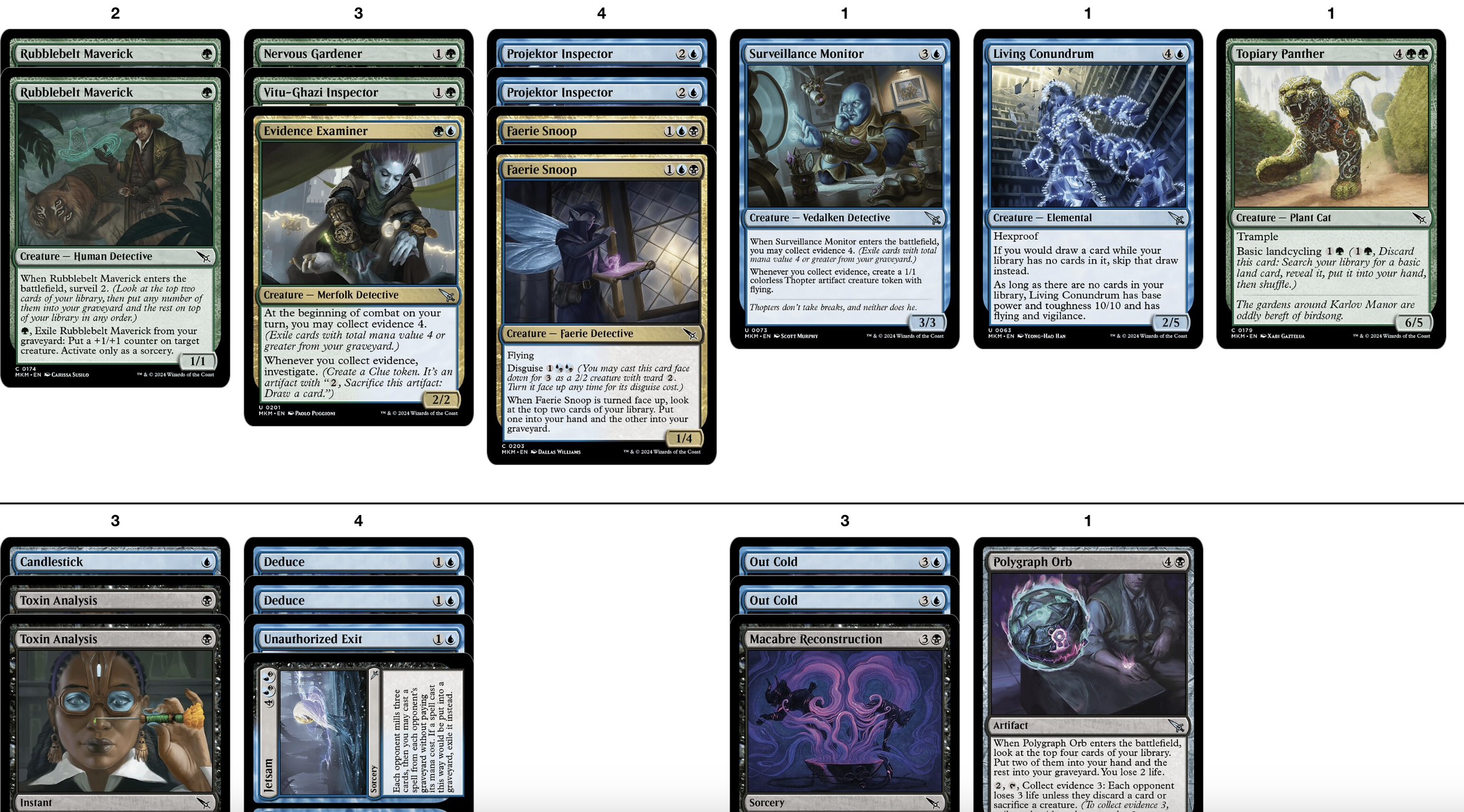 Faerie Snoop just to get through 2 cards, and Projektor Inspector to give us a loot on almost every single creature you want anyways in this deck. (yes, the Maverick is a detective too!)We can also use the blue tempo tools I mentioned before to help survive until we get there -