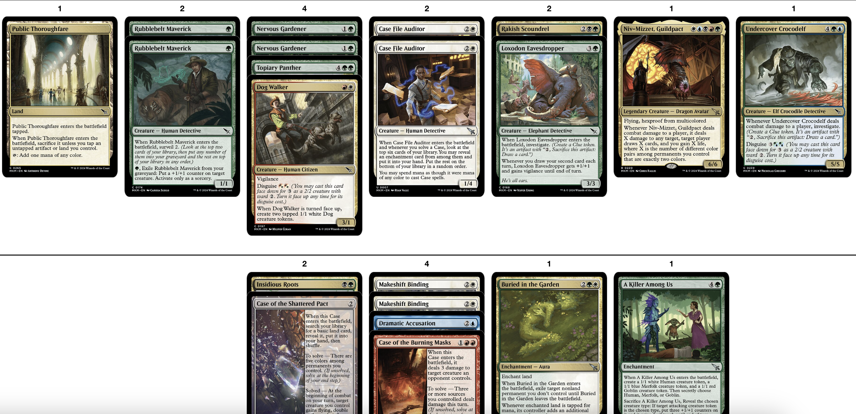 So since you can't expect to get too many cases, you'll want to fill your deck with more enchantments as well - I'd aim for at least 7 enchantments to make Case File Auditor feel good. Thankfully, there's quite a few good enchantments in the set, including at common!