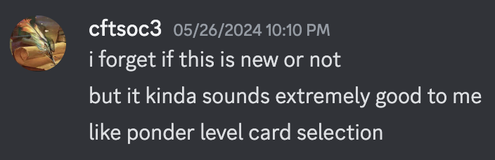 This was honestly a little bit surprising to me, as Malevolent Rumble (or Mumble, as I'll refer to it from here) was basically the first card we got excited for during spoilers. Basically as soon as we saw it, I distinctly remember cftsoc commenting that it was "basically ponder" - after all, it looks at 4 cards and only costs (net) 1 mana!