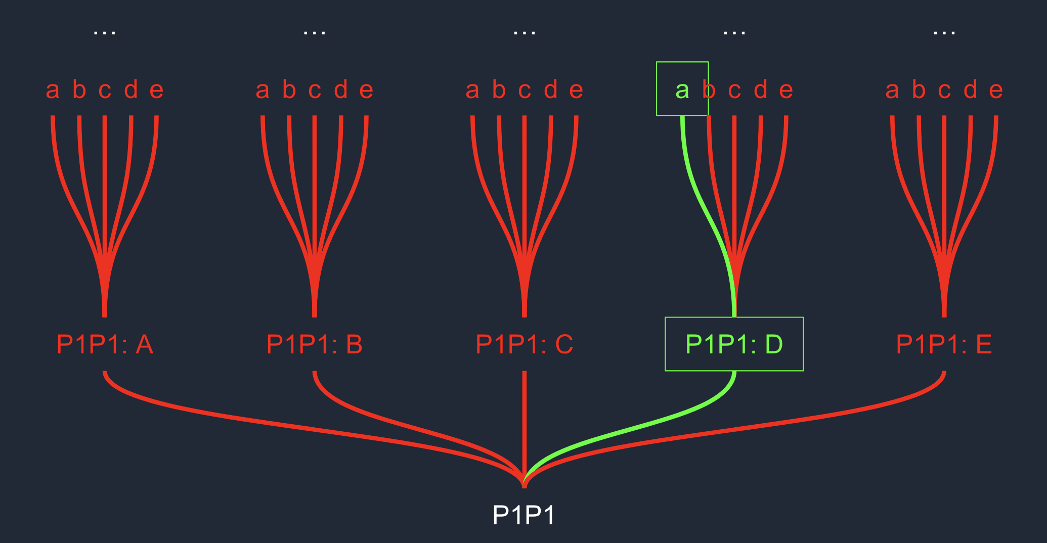 At the beginning of Pack 1 Pick 1, you have the whole possibility space open to you - for all you know, your deck at the end could look like anything. You're at the root of this huge tree of possibilities, and you could go down any branch you'd like. But each pick you make, you lock in a card that will definitely be in your pool at the end of the draft - thus narrowing down what your deck might look like at the end of the draft. By the end, you've chosen exactly one of the leaves of this tree as your final pool.